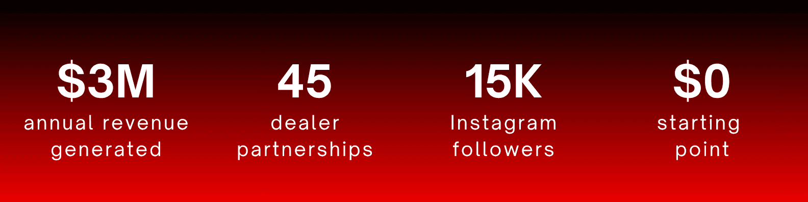 • Established 45 dealer partnerships across the North American market from zero, building a distribution footprint driven by brand positioning that resonated with the powersports retail community.